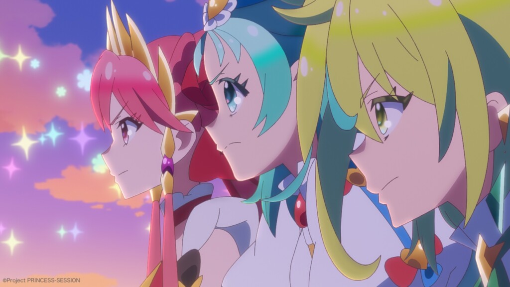 花の騎士シンシアと名乗る白い異形を退けたプリンセスたち。アリスピアの危機は去っておらず、さすがに気落ちしてしまいます。ですが、今日はこれから待ちに待ったなつのライブ。切り替えて、会場へ赴きます。