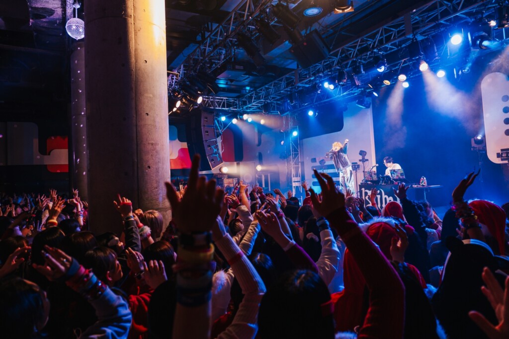 12月14日、2年ぶりに開催されたBimiのクリスマスライブは、赤と白をテーマにしたドレスコードで彩られ、会場はサンタやトナカイの衣装を身にまとったファンでいっぱい。オープニングはおなじみDJ dipによるジングルベルをサンプリングしたBGMで、フロアの手拍子とともに一足早いクリスマスパーティーが幕を開けた。