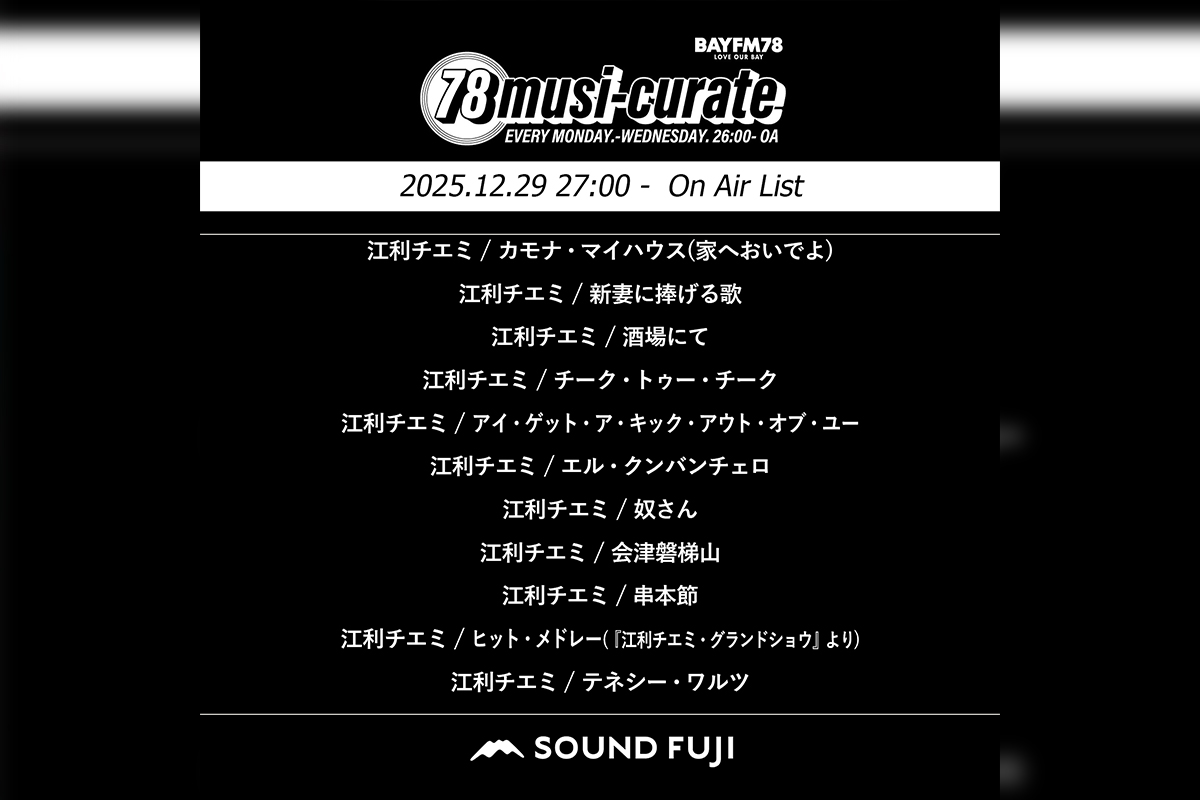 BAYFM『78musi-curate SOUNDFUJI zone』12/29 O.A.プレイリスト公開