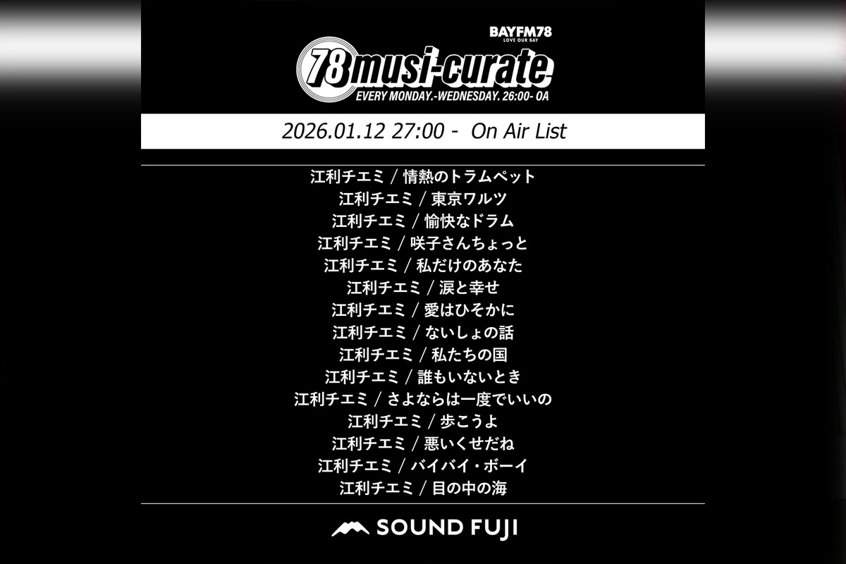 BAYFM『78musi-curate SOUNDFUJI zone』1/12 O.A.プレイリスト公開