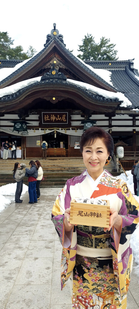 北陸3県を題材にした「慈雨(なさけあめ)」が好評で石川県観光大使を務める演歌歌手・島津悦子(64)が、金沢市内の観光名所「尾山神社」の節分祭豆撒きに参加し、令和6年能登半島地震の一日も早い復興と、自身が4月に発売予定の新曲ヒットを祈願した。