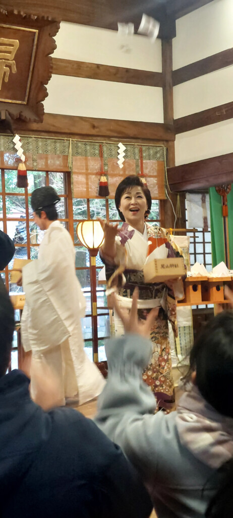 島津悦子 地元・金沢市の尾山神社節分祭豆撒き神事に参加