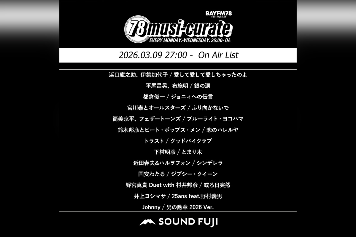 BAYFM『78musi-curate SOUNDFUJI zone』3/9 O.A.プレイリスト公開
