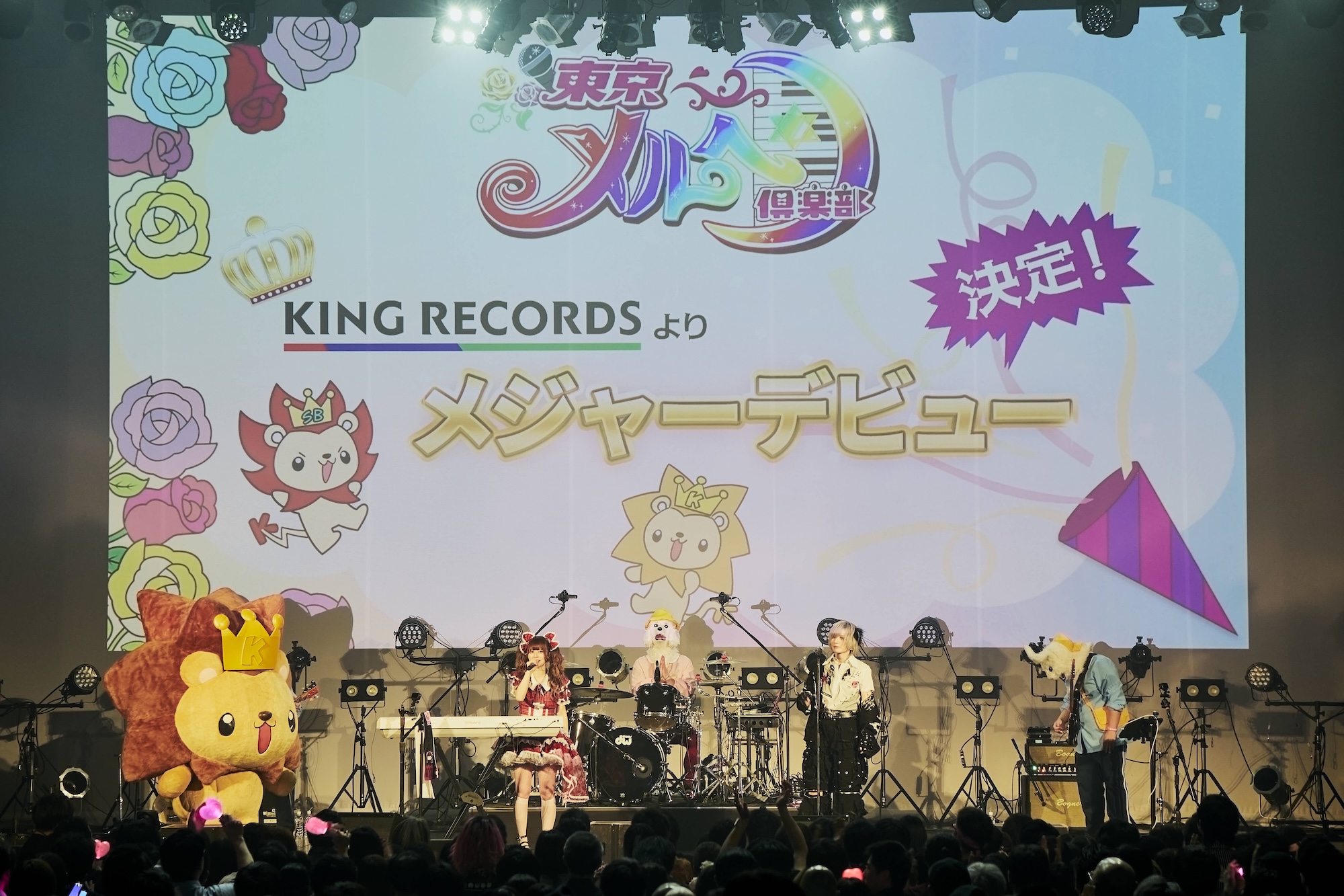 アンコールでは、メンバーが再登場し、キングレコードからのメジャーデビュー決定を発表。祝福の場には、レーベル「KING AMUSEMENT CREATIVE」のマスコットキャラクター“きんくりん”も登場した。